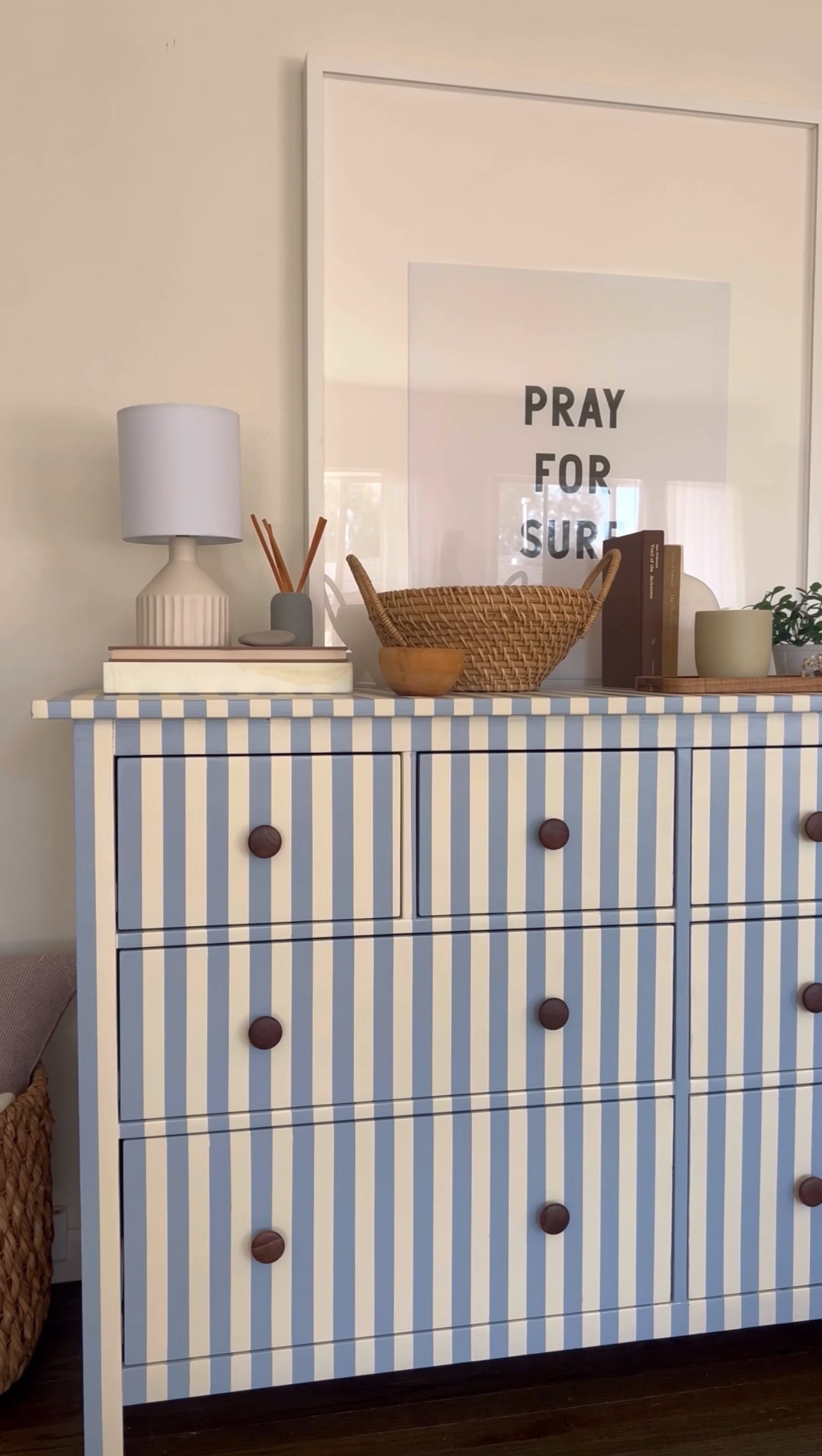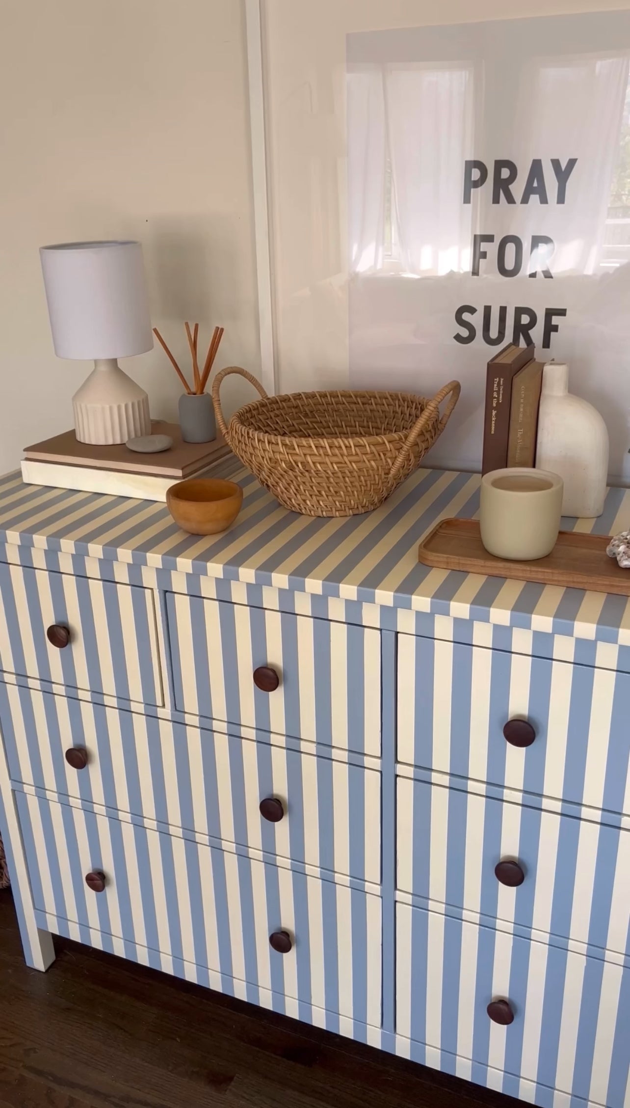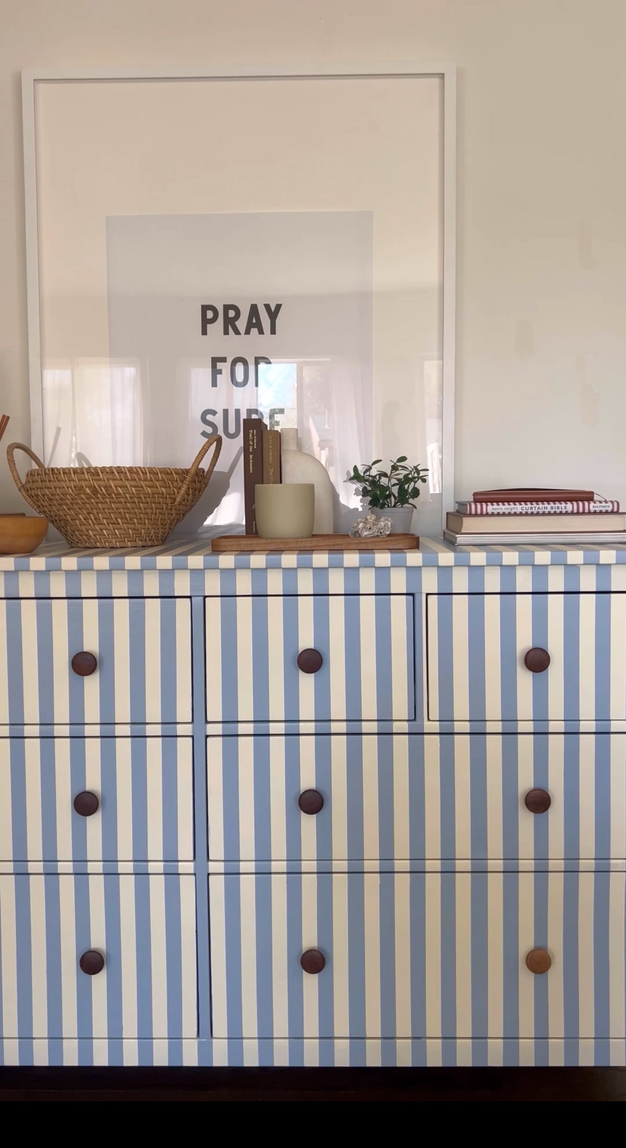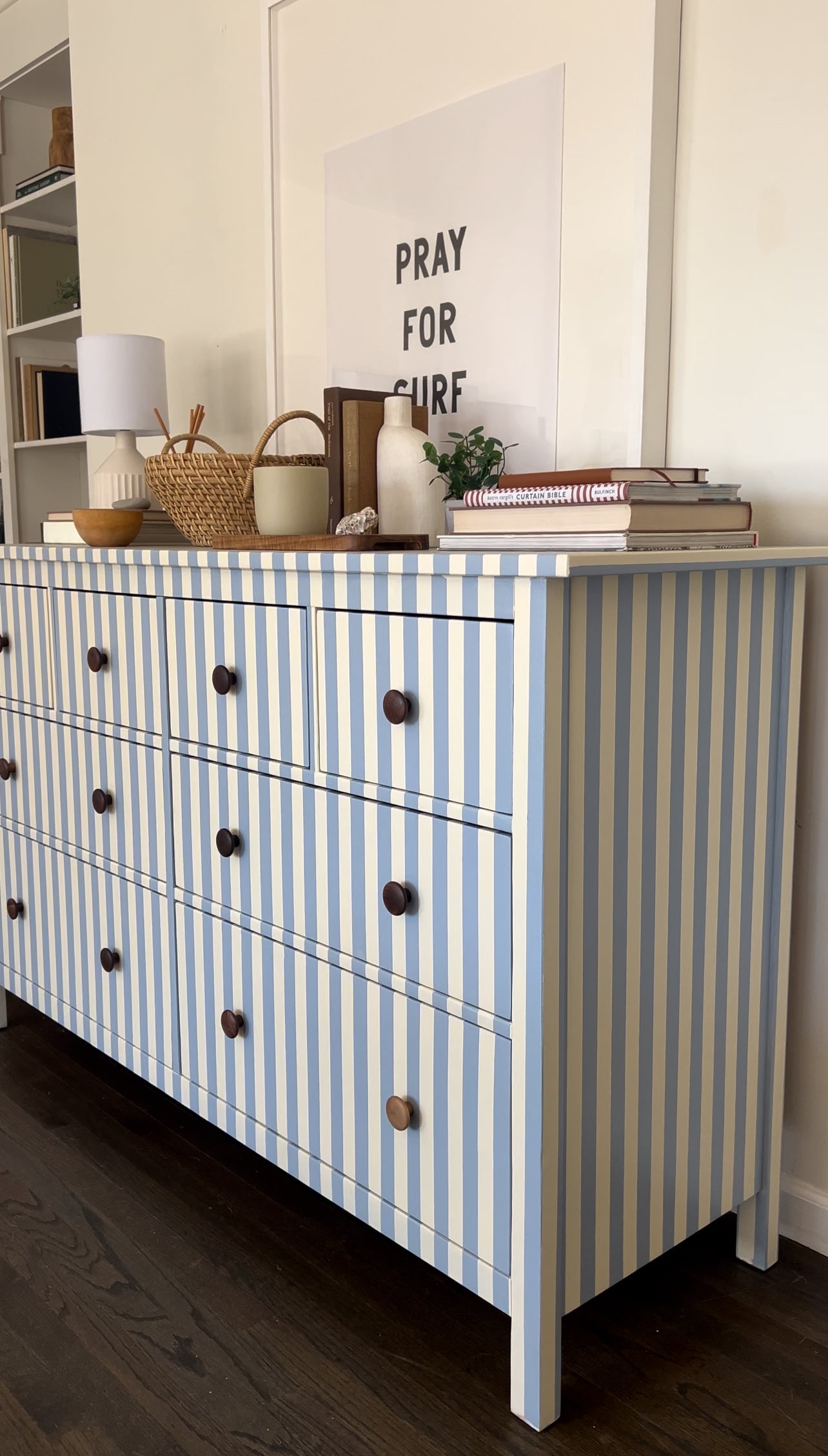 Blue and White Striped Hemnes Dresser.