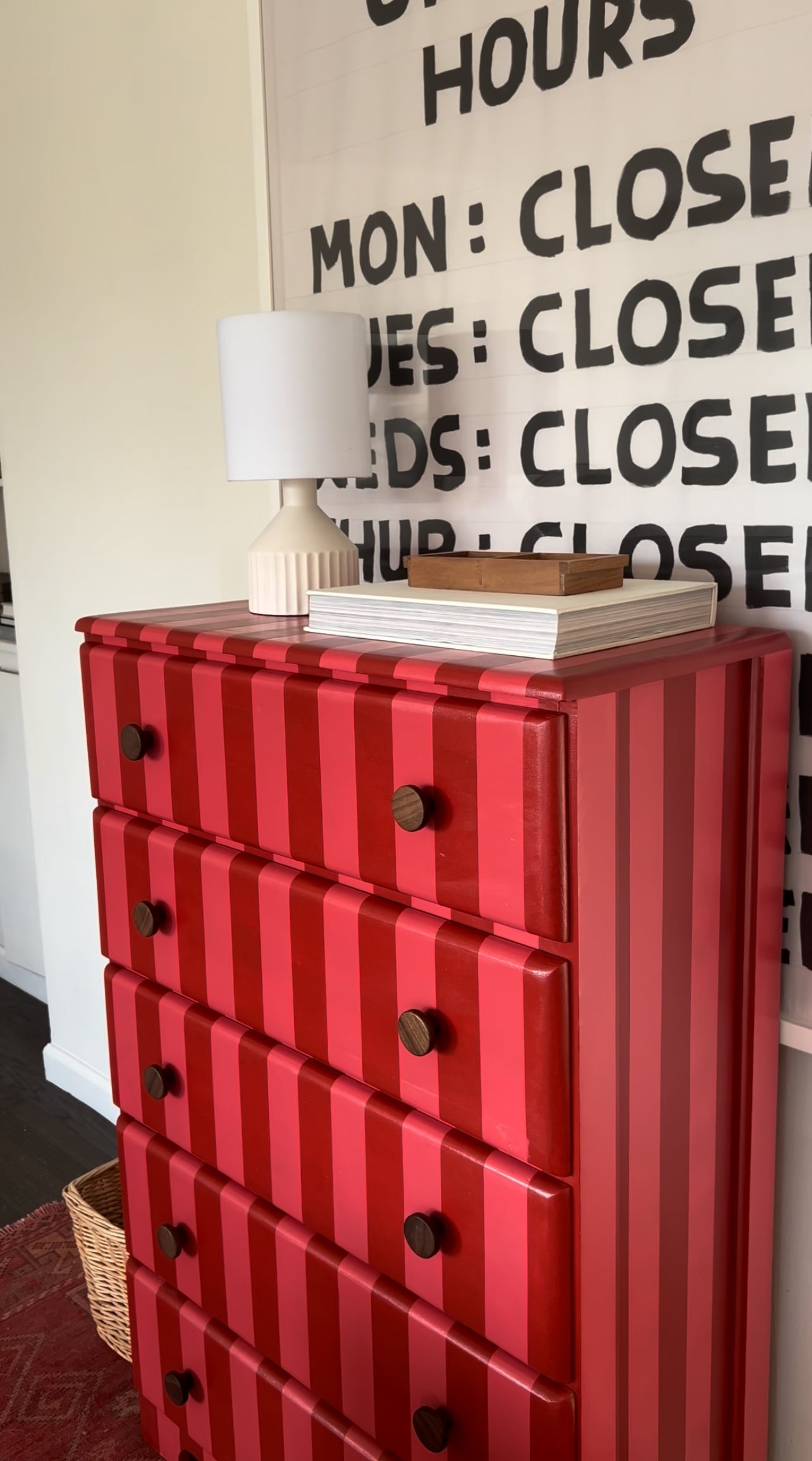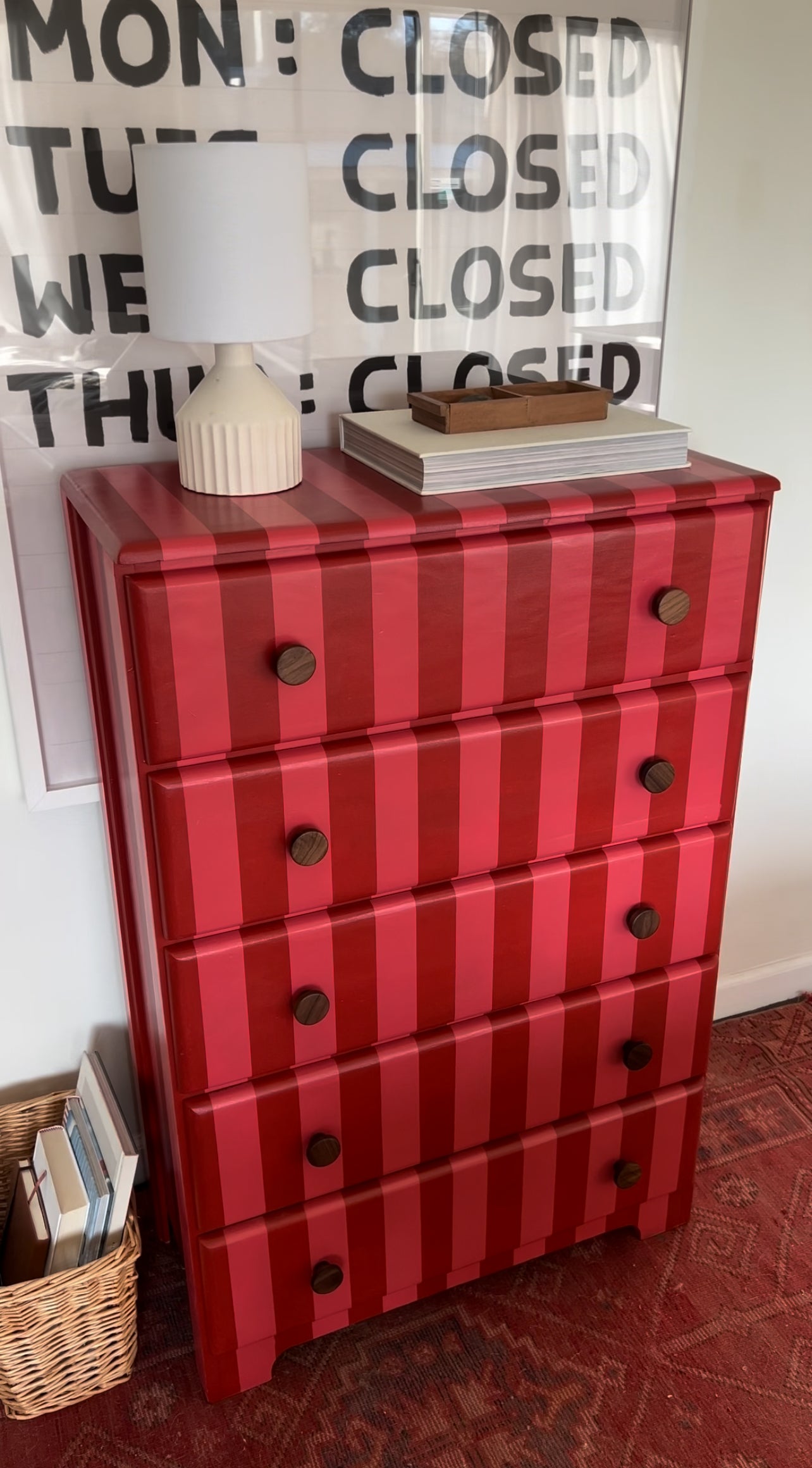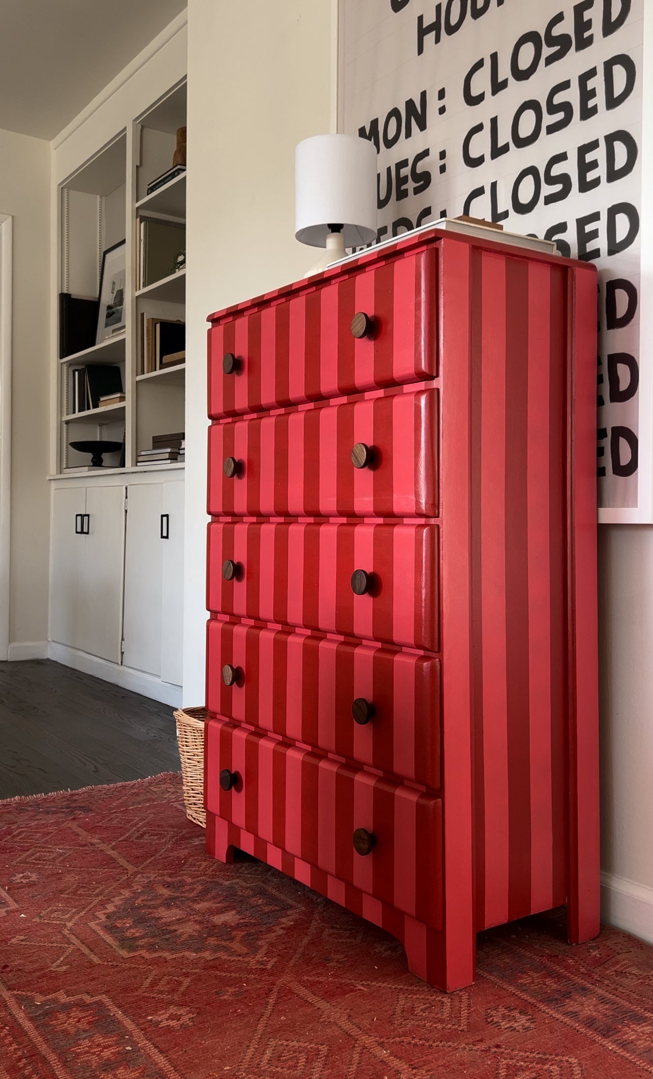 Pink and Red Striped Dresser