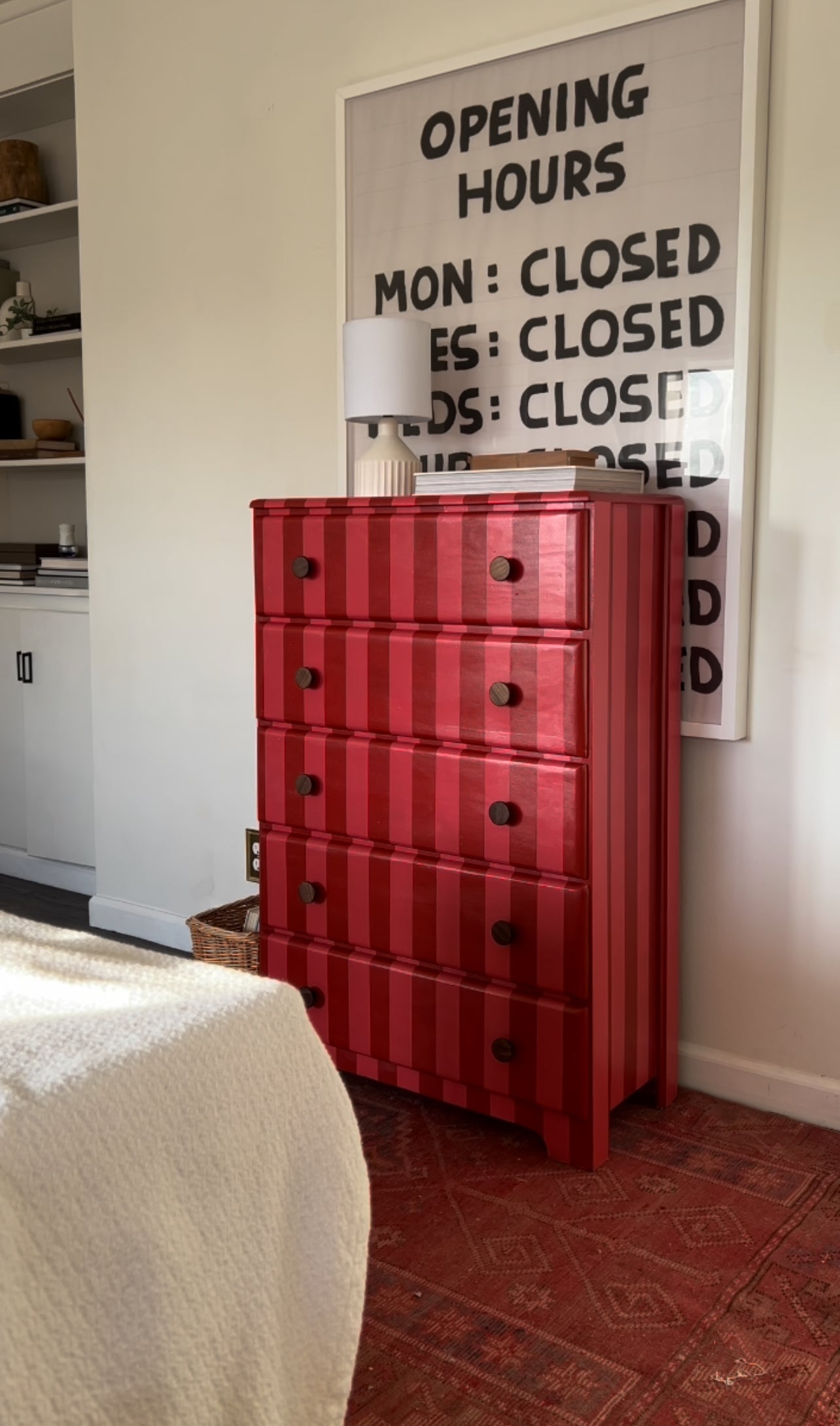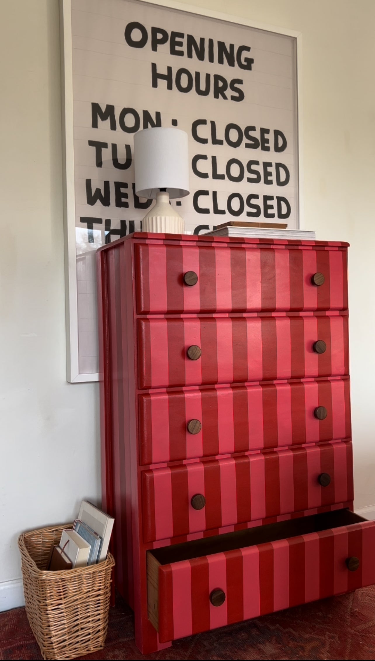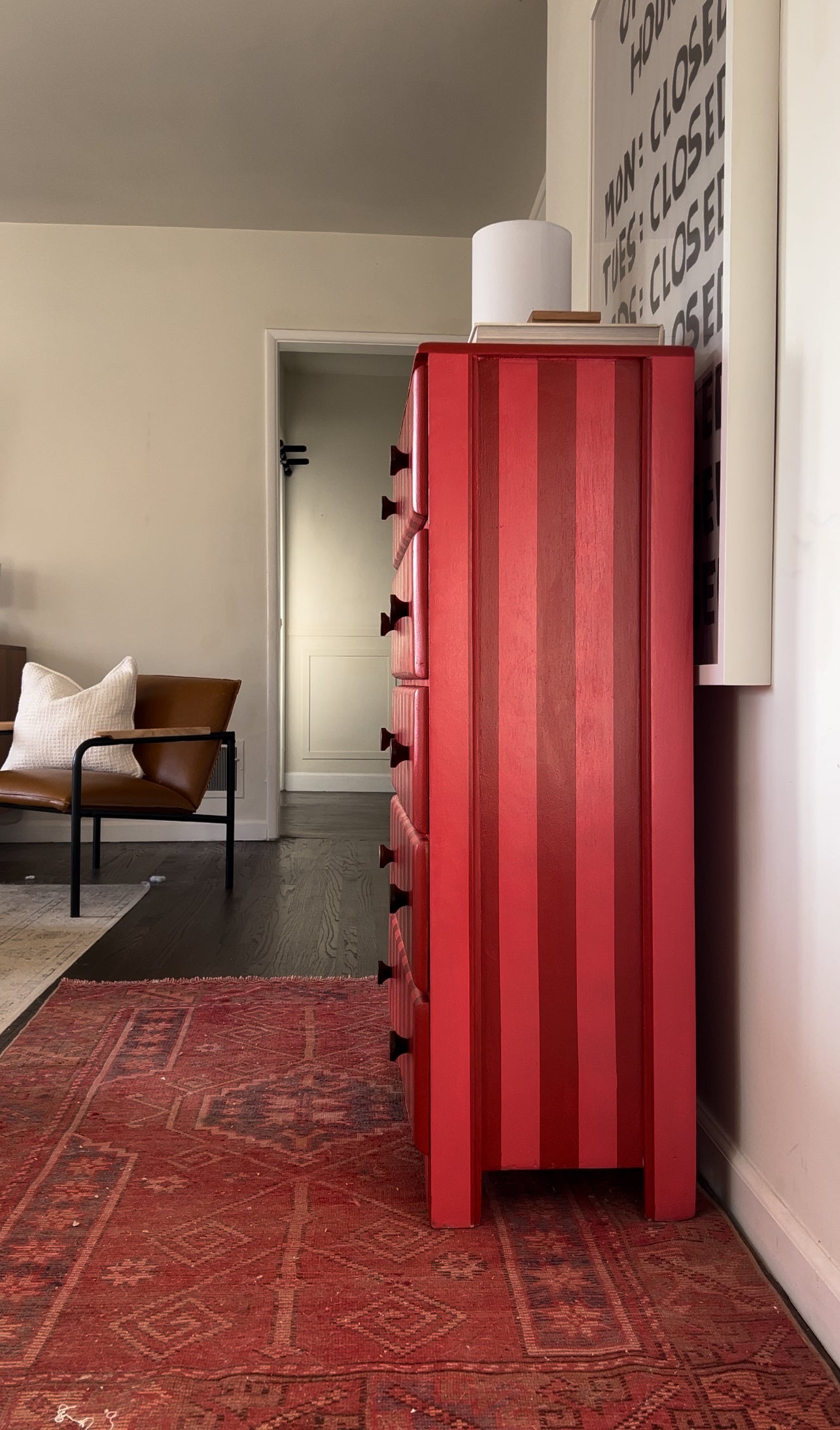 Pink and Red Striped Dresser