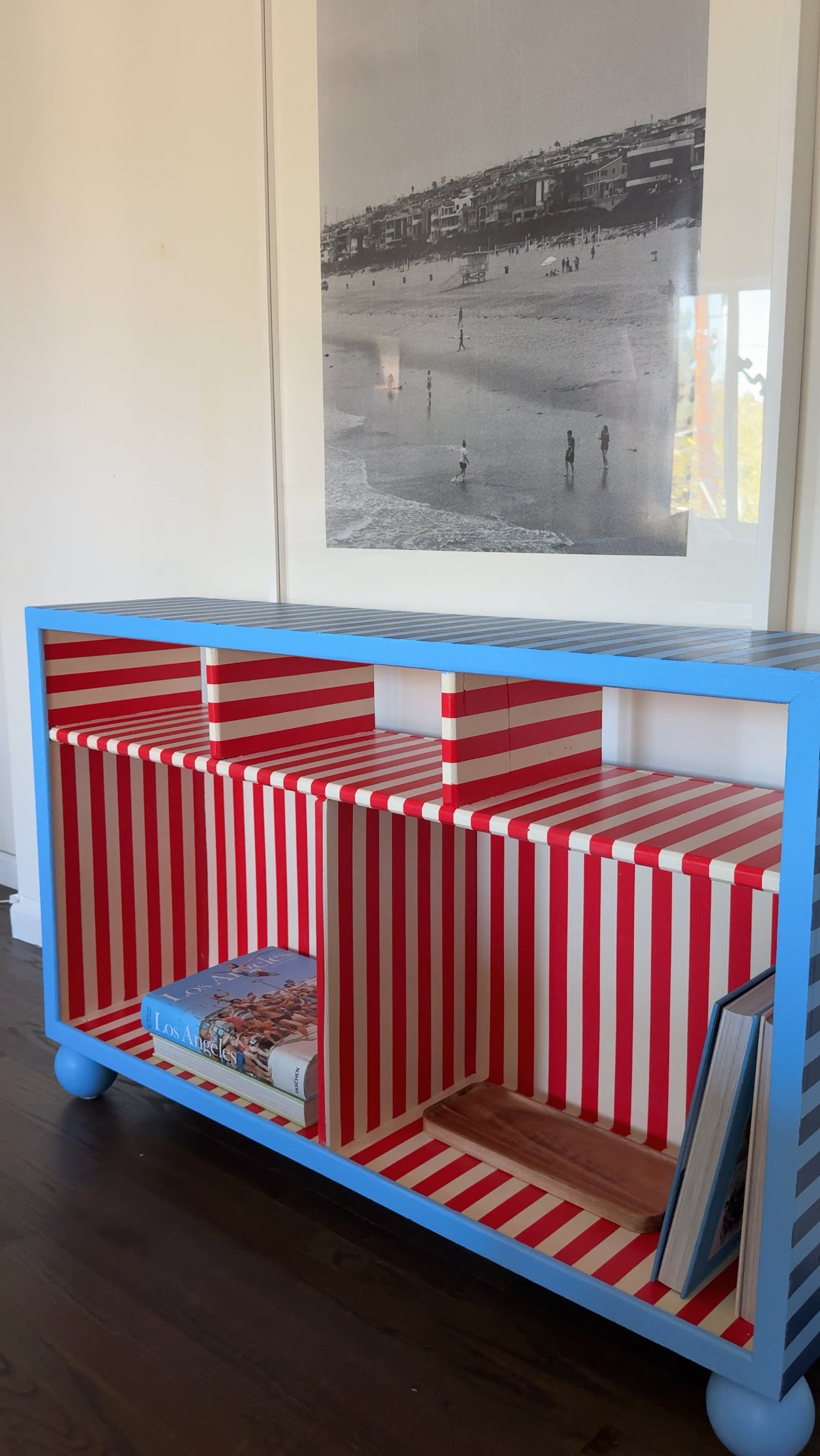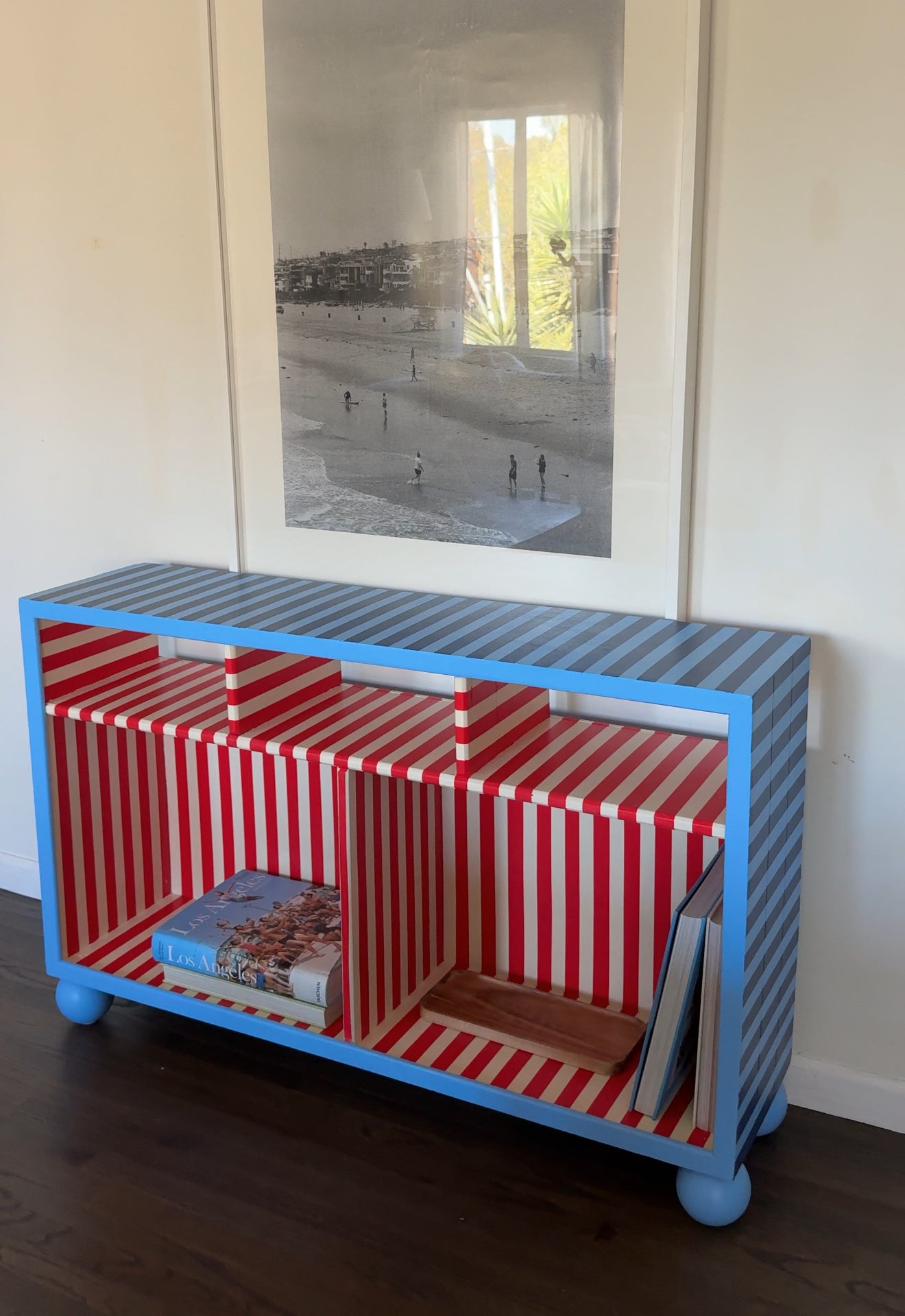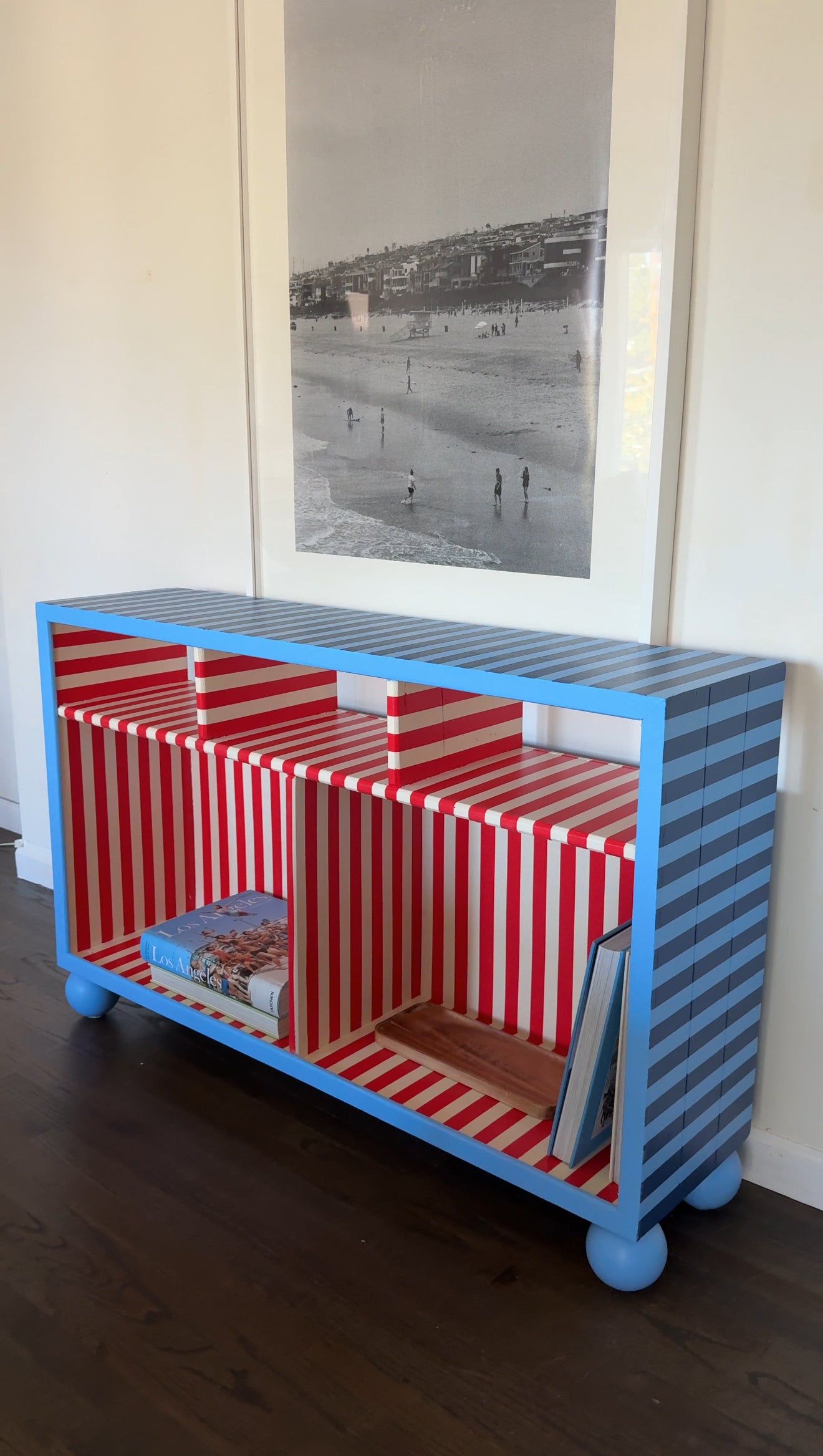 A cute, bright statement piece with large storage sections!