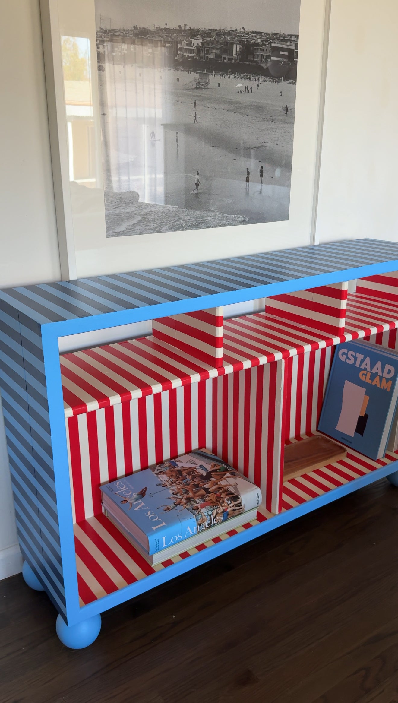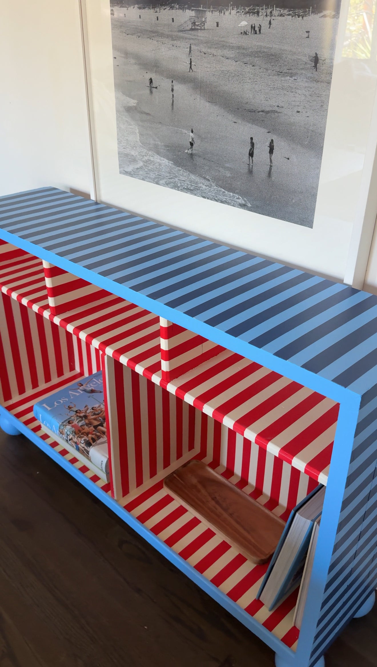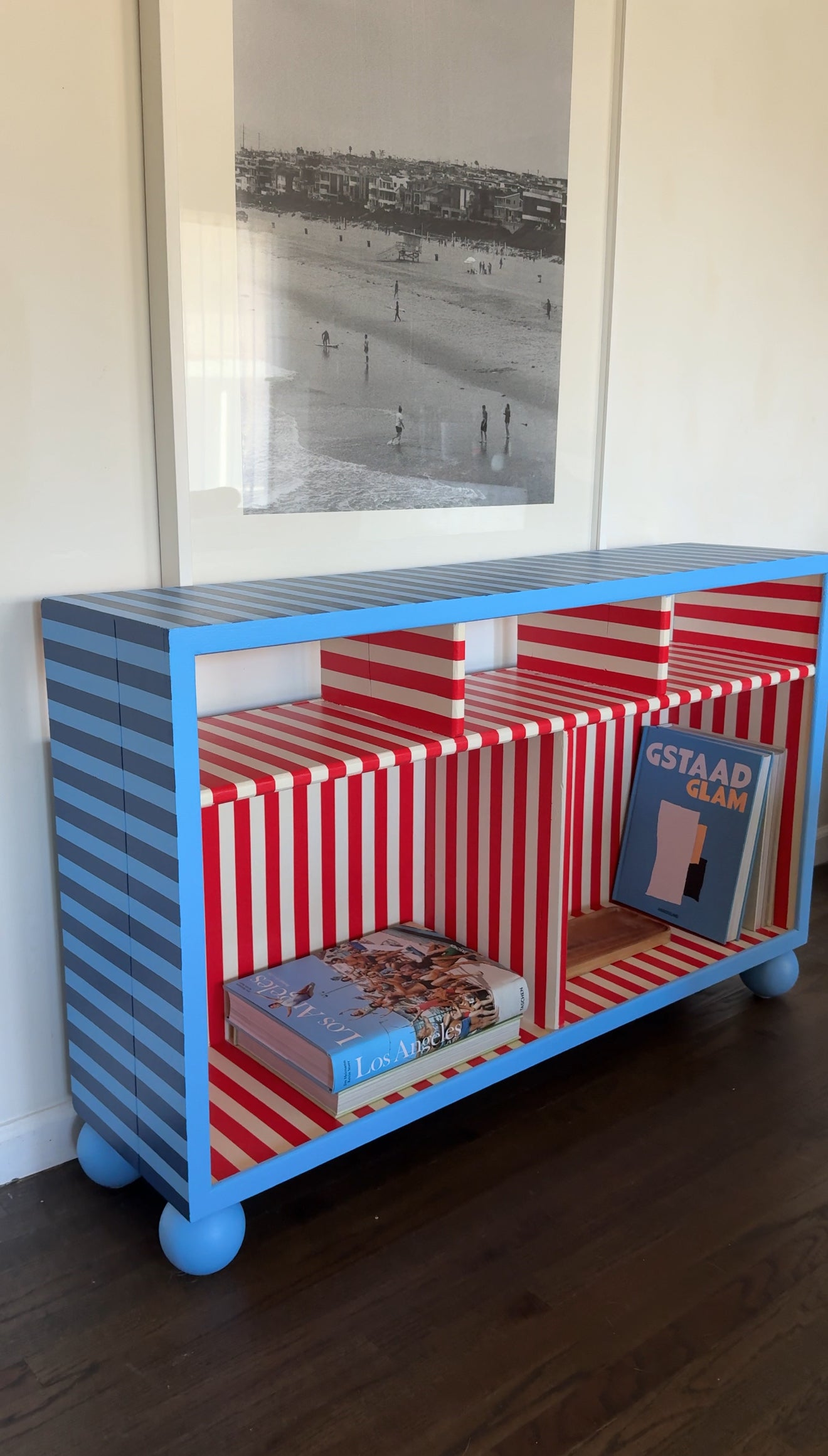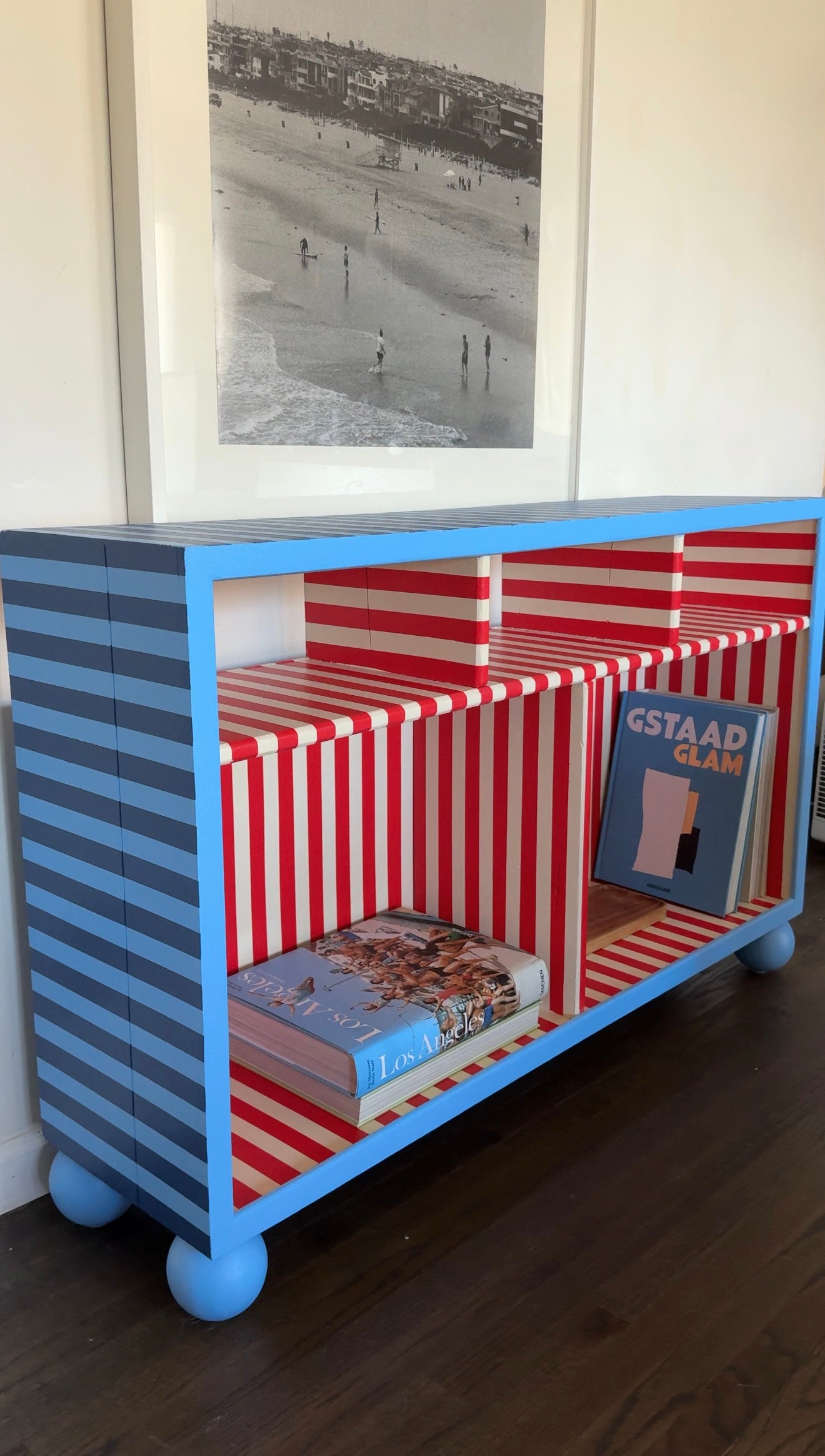 A cute, bright statement piece with large storage sections!