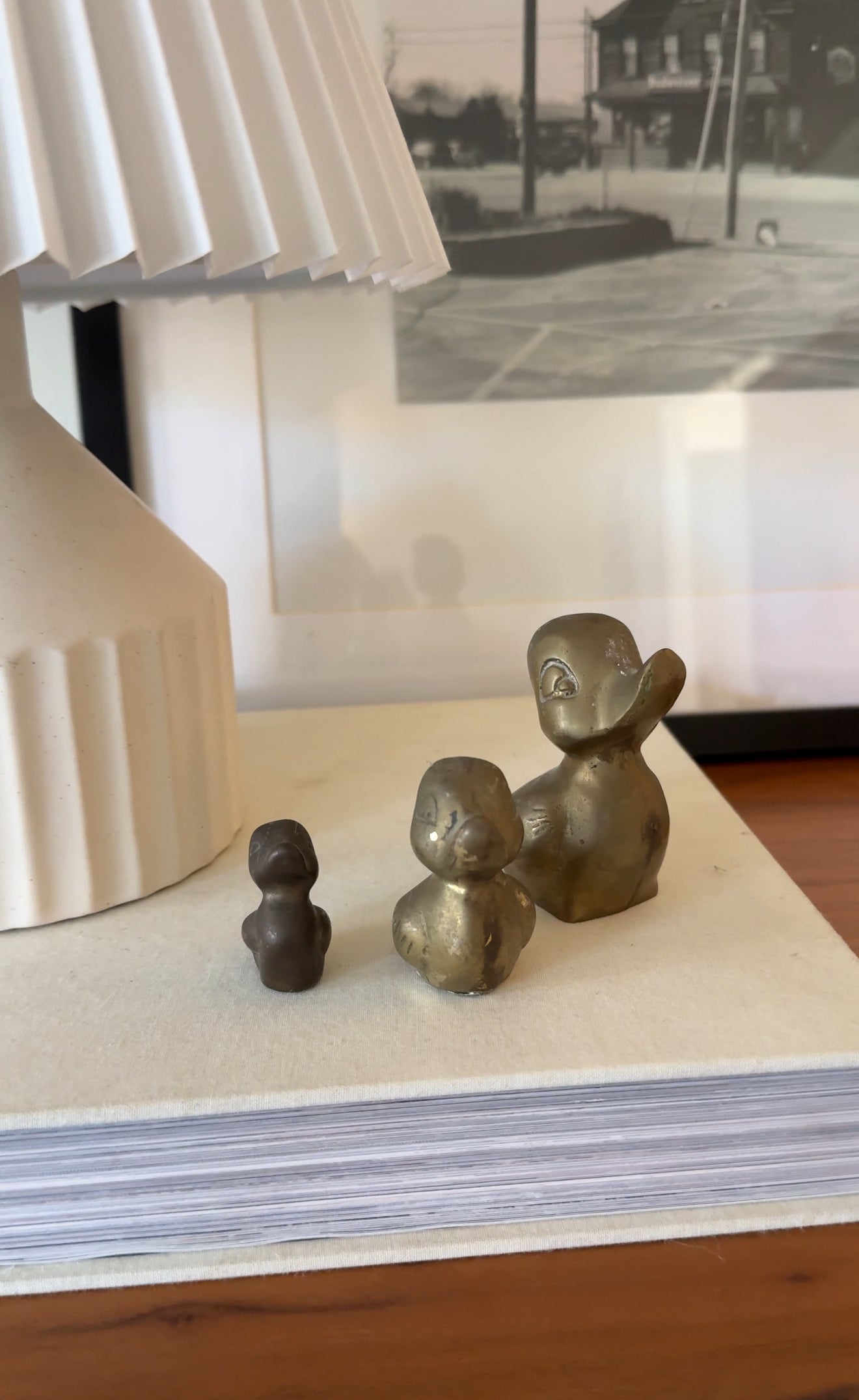 x3 set of vintage solid brass duck figurines