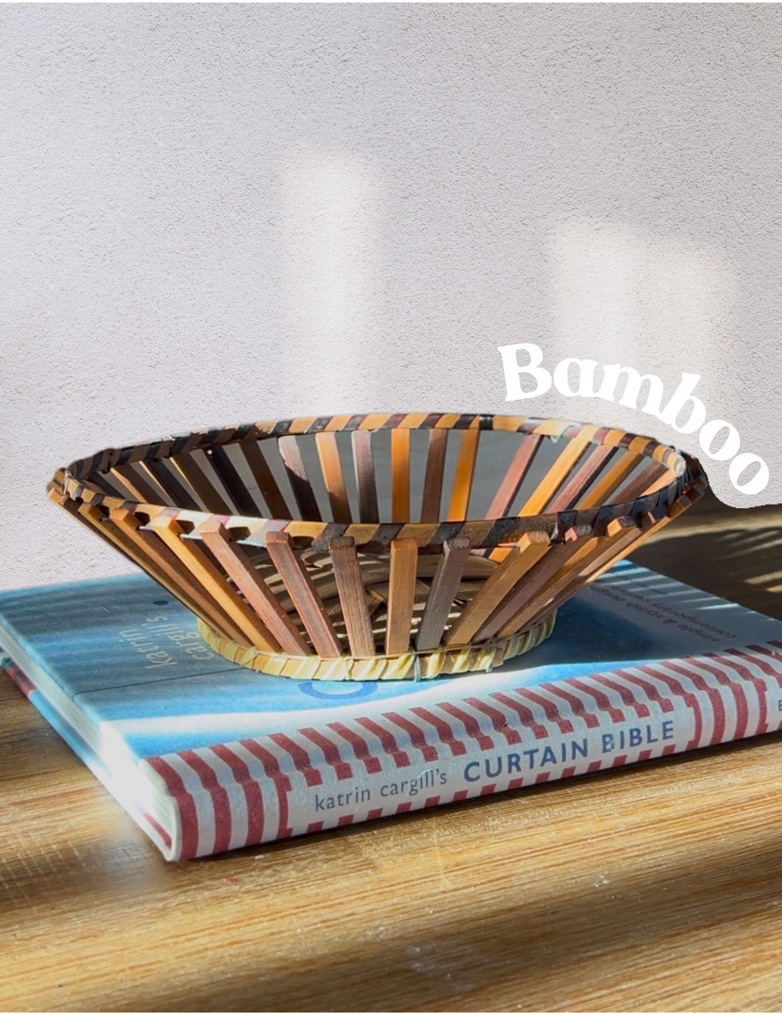 Bring some vintage charm to your space with our round bamboo wood slat basket. Perfect for adding a touch of mid century modern style, this quirky basket is both functional and stylish. Add a bit of character to your home decor!